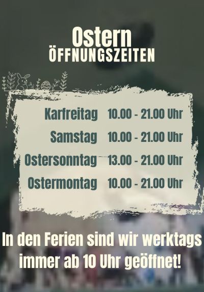 Ostermontag: 10:00 – 21:00 Uhr✨ Wichtiger Hinweis: