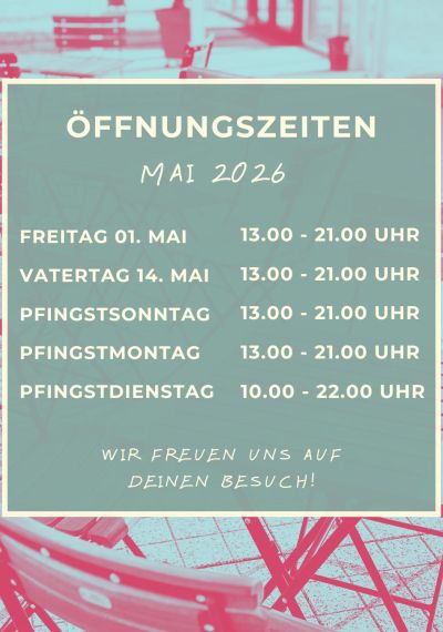 An Feiertagen gelten unsere Öffnungszeiten wie an Sonntagen.